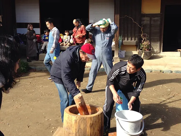 ​The glutinous rice harvested in the “Rice Growing Classroom” is pounded into rice cake “Mochi”.