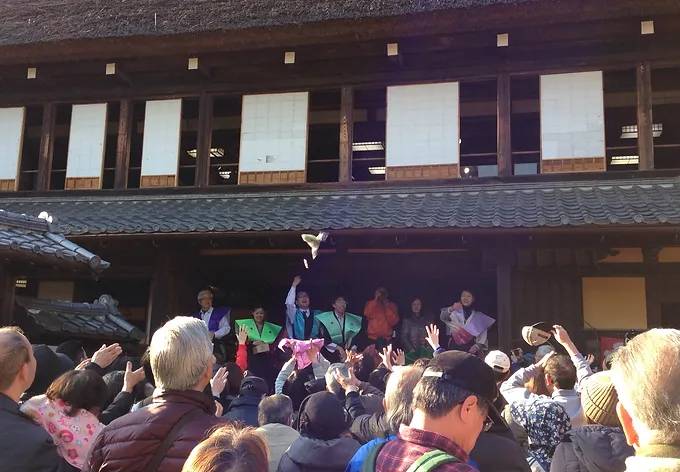 その年の干支にあたる人々が炒った大豆をまき、鬼を追い払い福を呼び込みます。